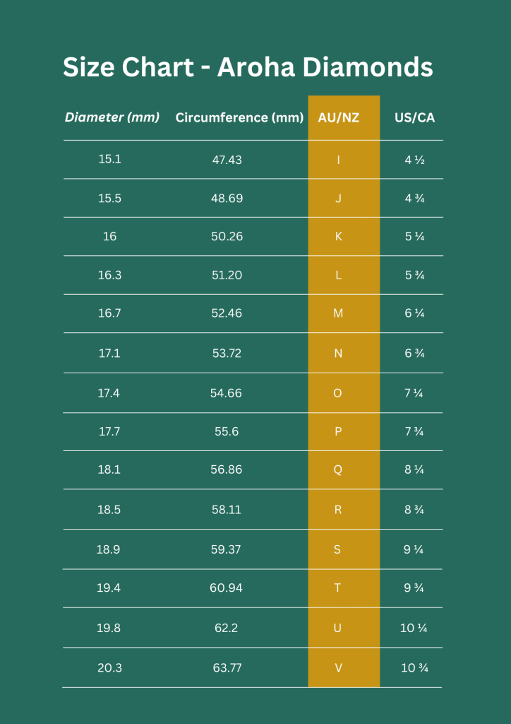 Use our New Zealand Ring Size Chart below to find the corresponding size for your measurement.
