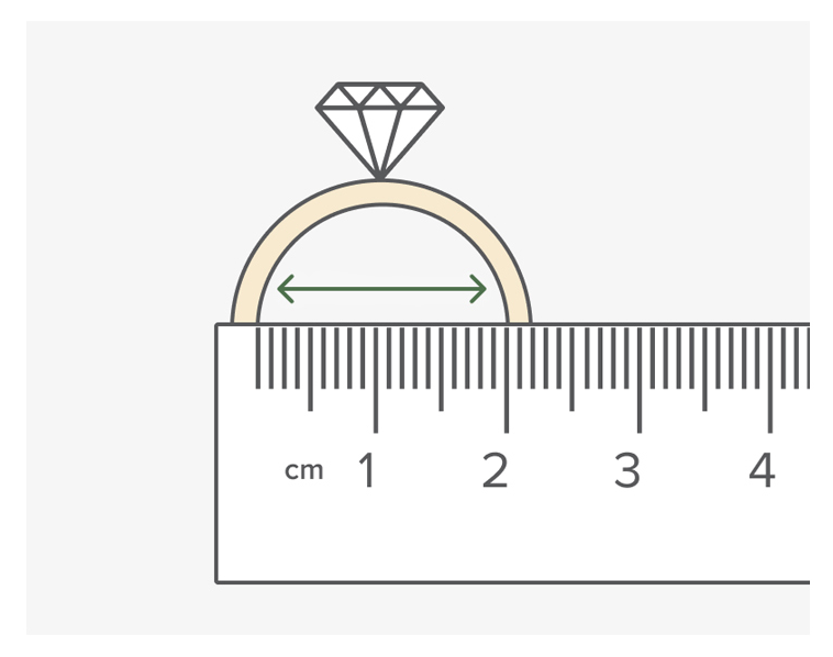 Place the ring on a ruler or measuring tape with millimetre (mm) measurements. Measure the internal diameter of the ring—the part in contact with your finger.